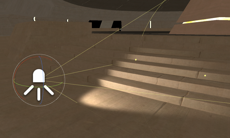 Spot lights light an area over a range and angle; the light gradually falls off toward the maximum range. Unlike Point lights, which emit light in every direction, Spot lights are constrained to a given angle. These types of lights are normally used for artificial light sources such as flashlights, construction lights, and searchlights.