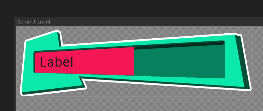 Note: Your label might not be visible anymore. If this is the case, it is because your HealthBarMask Element is the last child of HealthBarBackground. VisualElements are rendered in the order they are listed in the Hierarchy window, so the Label is rendered before the HealthBarBackground (and its child the fill bar) are rendered on top, which hides it.