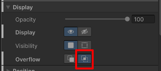 7. To create the masking effect, use the foldouts (triangles) to open the Inlined Styles > Display section and set the Overflow property value to hidden.