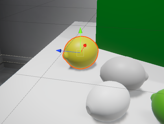 1. In the Scene view, select your new red apple (make sure to have the parent object selected).