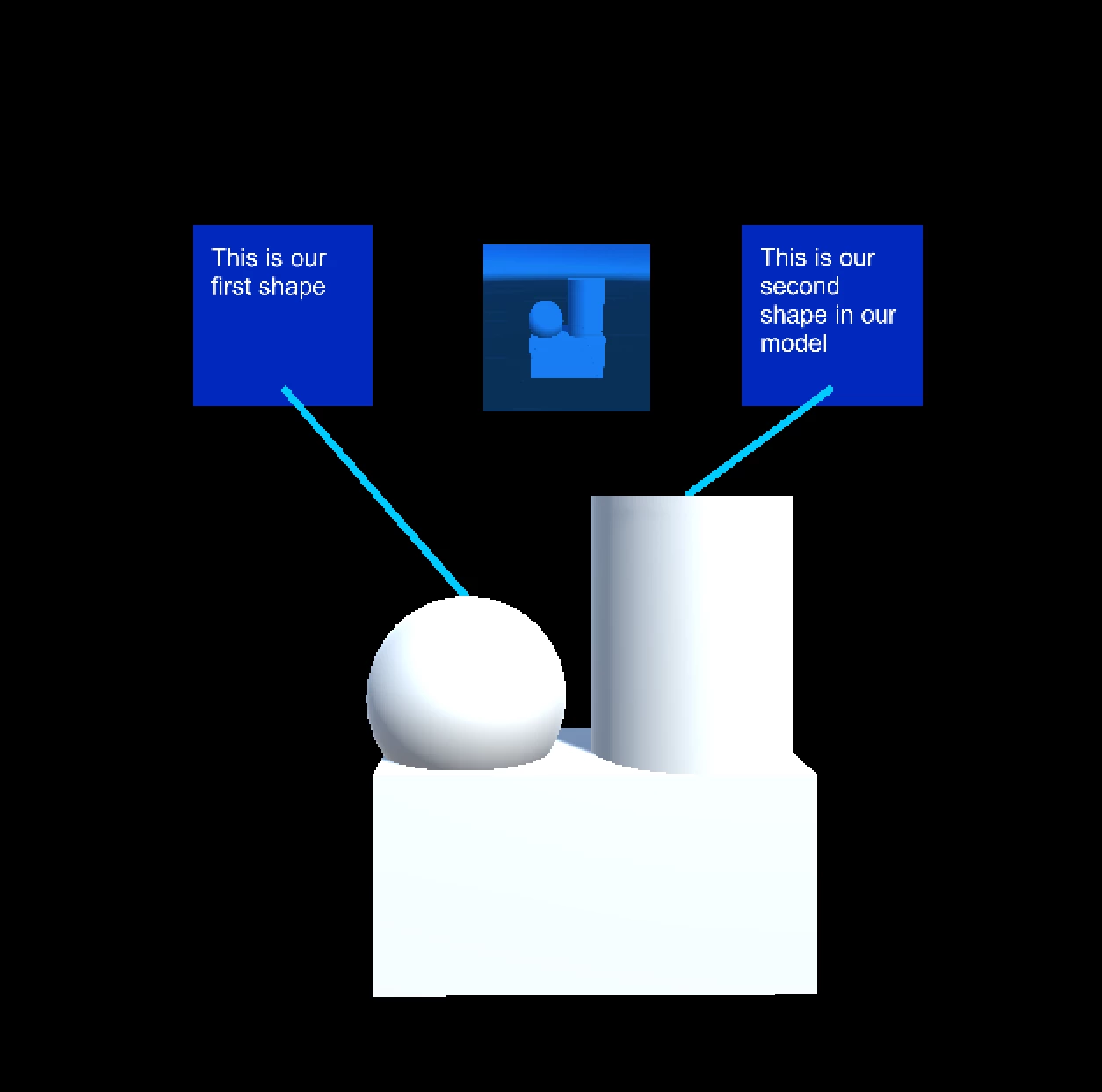 - Add descriptive UI objects (images, text, lines) to the 3D Scene.
