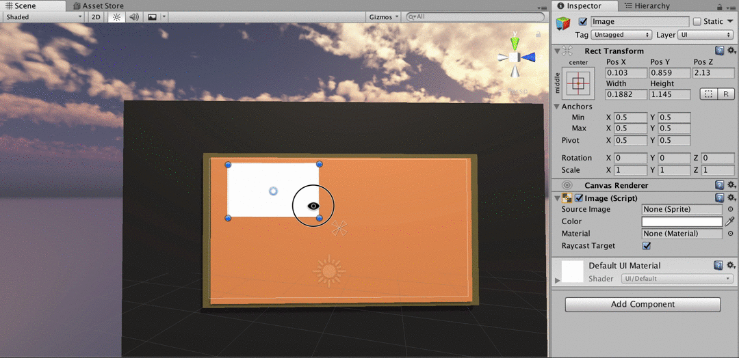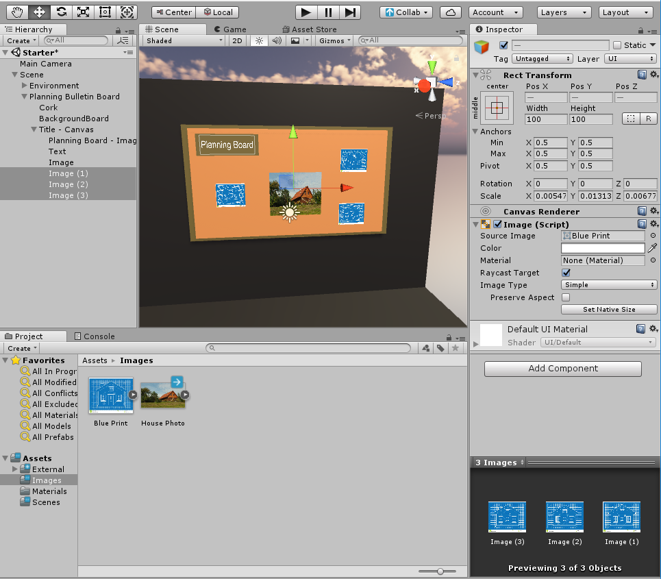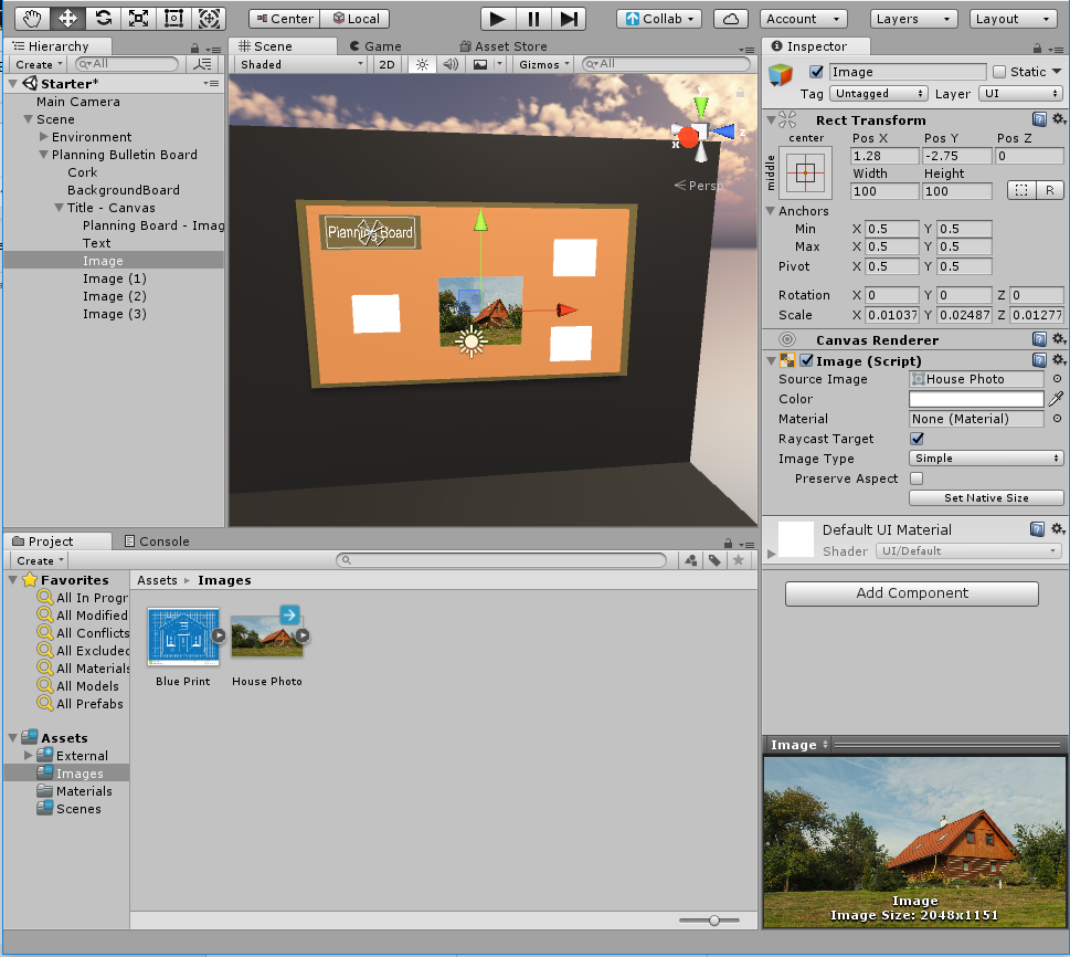 1. To display the house photo, add a new Image and position it in the middle of the board (Create > UI > Image)