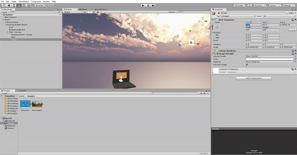 2. To display the blueprint images (Assets > Images > Blue Print.jpg), select the duplicated images and add the blueprint Sprites to their Source Image parameters like in the previous step.