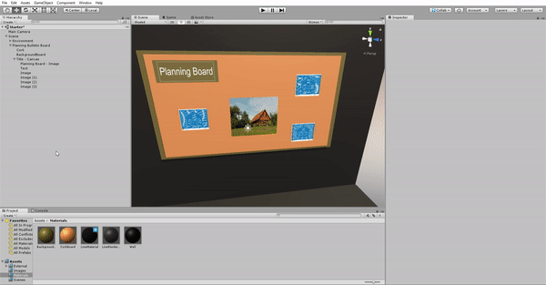 Add an image to your scene, adjust its size to fit the bulletin board, and position it in the middle of the board.