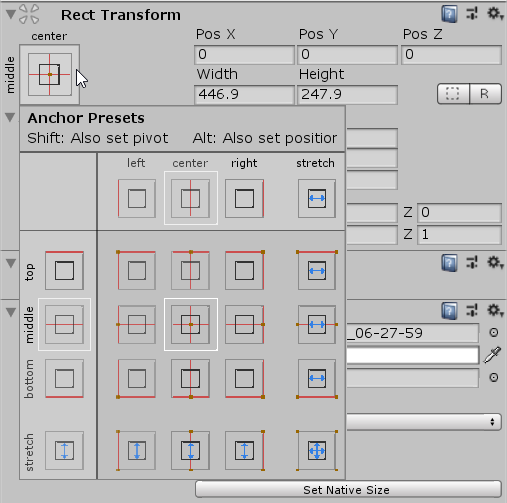 The Anchor Point Presets are alignment tools in the Rect Transform. A UI object can be aligned with the corners or sides of its parent object, making for precise positioning.