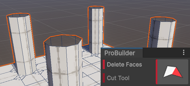- Using ProBuilder tools: select the Delete Faces tool after selecting the desired surfaces.