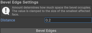 There is an additional settings icon in the Bevel tool. Hold Alt+left-click (macOS: hold Option+left-click) to open the Settings window. Here you can set the size of the bevel (this will depend on the shape you are working on.)
