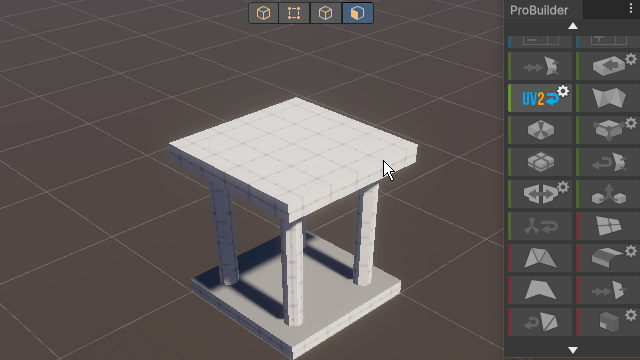 To do more detailed 3D modeling, you can add more faces to the shape. You can split surfaces using various tools from the ProBuilder window.