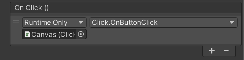 Because the function you choose can be from a wide variety of places, it is easy to create your own function that will be called when something is clicked on. The easiest way is to get custom functionality for something like a UI button is to create a MonoBehaviour script with your desired behavior in a method; attach the MonoBehaviour to a GameObject in the scene and then reference that GameObject in the Button component’s OnClick list. Here is an example script to show what could be added to a button.