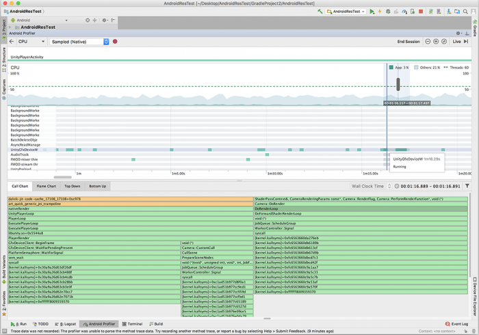 When you enable multithreaded rendering you can spot the GfxDeviceClient class functions in call-stacks on a native platform profiler such as XCode. In the Unity Timeline Profiler, it is called the Renderthread.
