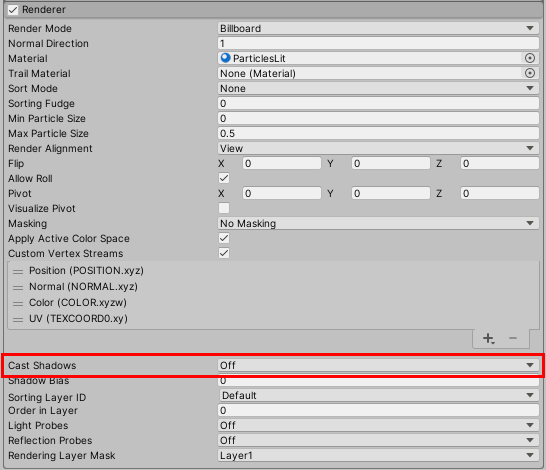 Already, with those few changes, we have lowered the particle count and lowered performance hits by optimizing the curves and disabling the ability to cast shadows.