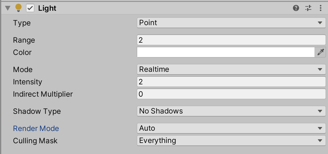 7. In the Light, make sure Shadow Type is set to No Shadows for optimization purposes.