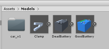 - In the Project panel, under Assets > Models drag the good battery and dead battery into the scene.