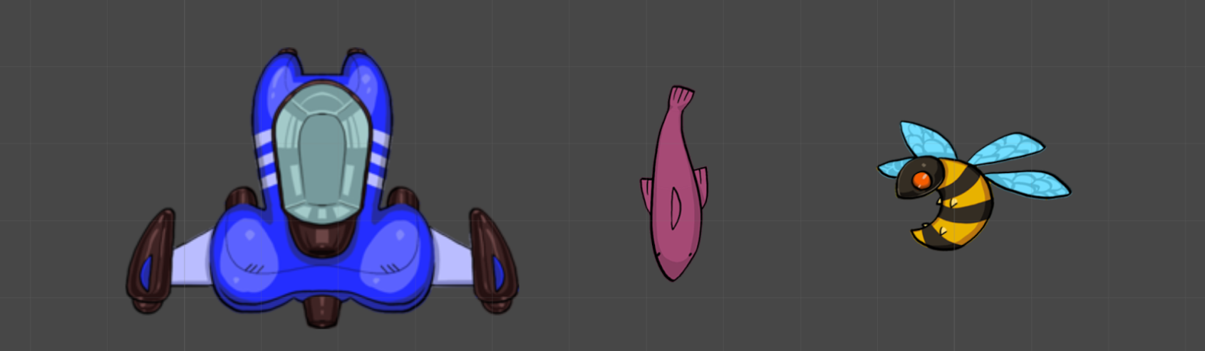 In the image above, for instance, you would set the Look Axis to Up for the spaceship, Down for the fish, while you wouldn’t enable Orient to direction for the bee because it’s framed from the side and not from the top, so rotating the sprite would look strange.
