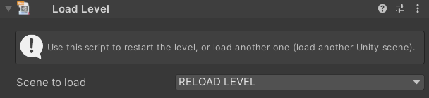 The RELOAD LEVEL menu item in the Scene to load property dropdown reloads the current scene. This is useful if you want to reset the state of the game after a game over.