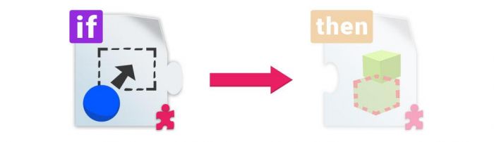 Actions are scripts that don’t work on their own, but need to be executed by Conditions. The Action is only executed if the Condition is verified. Action scripts because they have a little yellow then tag at the top-left corner of their icon.