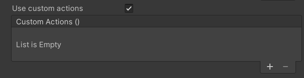 Enabling the Use custom actions property reveals a list of Unity Events. Here,you can connect anything you would normally use an UnityEvent for.