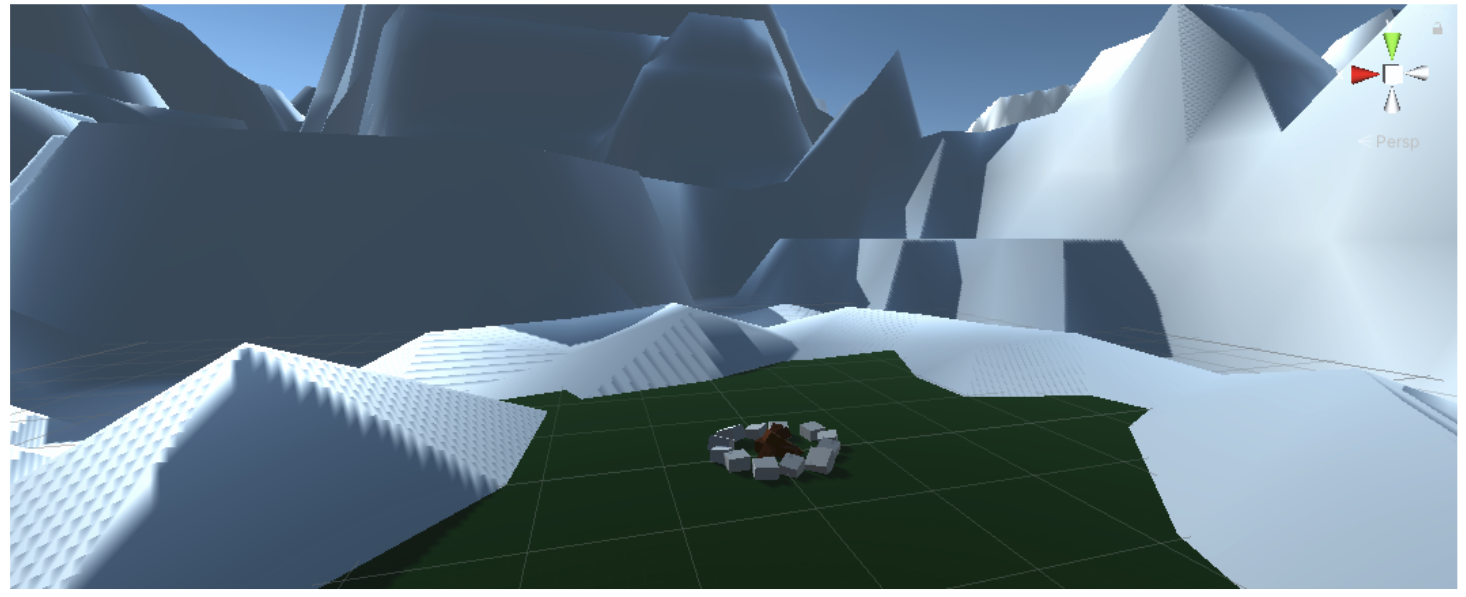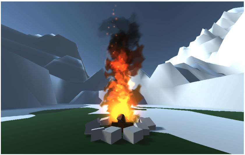 In the CC_VFX scene, you will find a simple fire pit in a clearing of some snowy mountains.