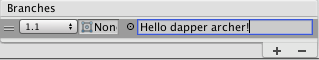 6. 右側のテキストボックスにプレイヤーの最初の会話の選択肢を追加します:Hello dapper archer!