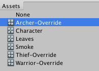 3.  この NPC については、Archer-Override  アニメーターコントローラーを選択してください。これは、このキャラクターのタイプのために特別にデザインされた動きを与えます。