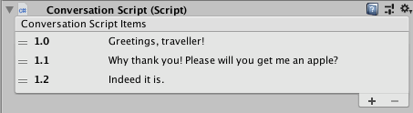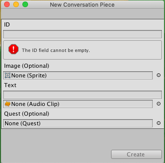 4.   ボタンをクリックして、新しい Conversation Script Item を追加します。これにより New Conversation Piece ウィンドウが開きます。