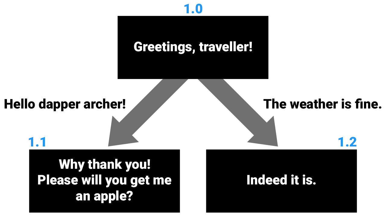 まずは、簡単な分岐ダイアログの例を追加してクエストを設定してみましょう: