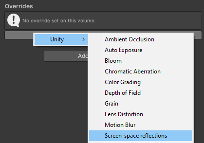 Screen Space Reflections are added as an Effect Override to a Post-process Volume (Figure 02).