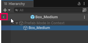 To exit prefab editing mode, go to the Hierarchy window and select the left-arrow to the left of the prefab name.