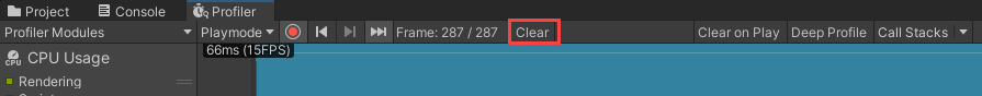 4. Clear the Profiler data and capture more data once again in Play mode.