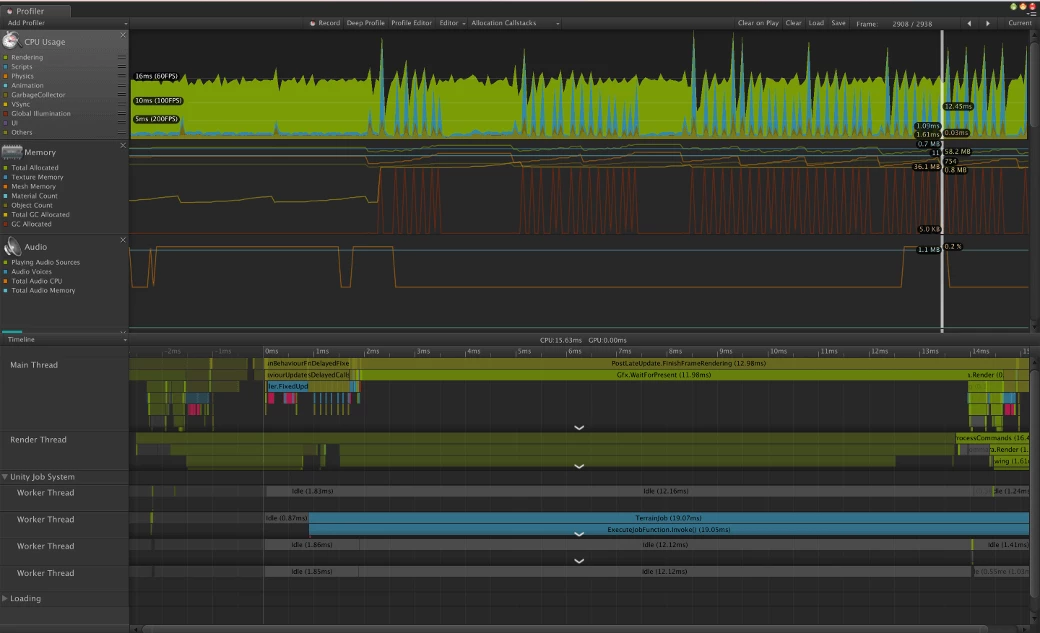 The profiling and optimization workflow is a useful iterative process for finding potential bottlenecks while collecting and analyzing performance data for your mobile app. Unity's built-in Profiler and Frame Debugger are great starting points for analyzing how resources are used by your application. When a finer measurement is needed, tools such as Arm Streamline are a great solution for profiling on your target mobile device.
