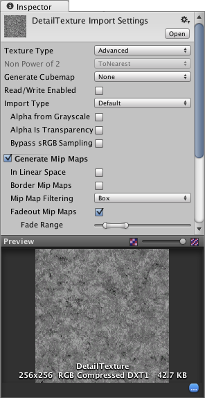 Unity import settings for the detail texture