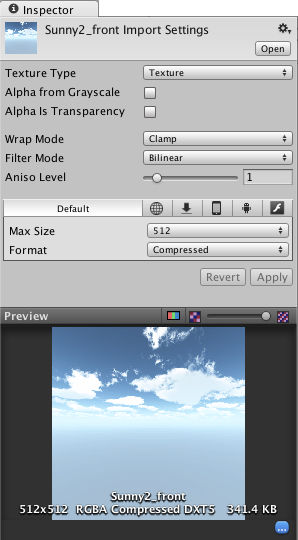 Once you have saved your image to the Unity project, you can select it to see its import settings in the Inspector.