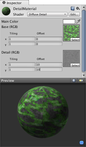 In addition to the base texture, you will see a second sampler box to receive the detail texture you have just imported. Typically, you will want to set its Tiling values quite high (maybe about 10).