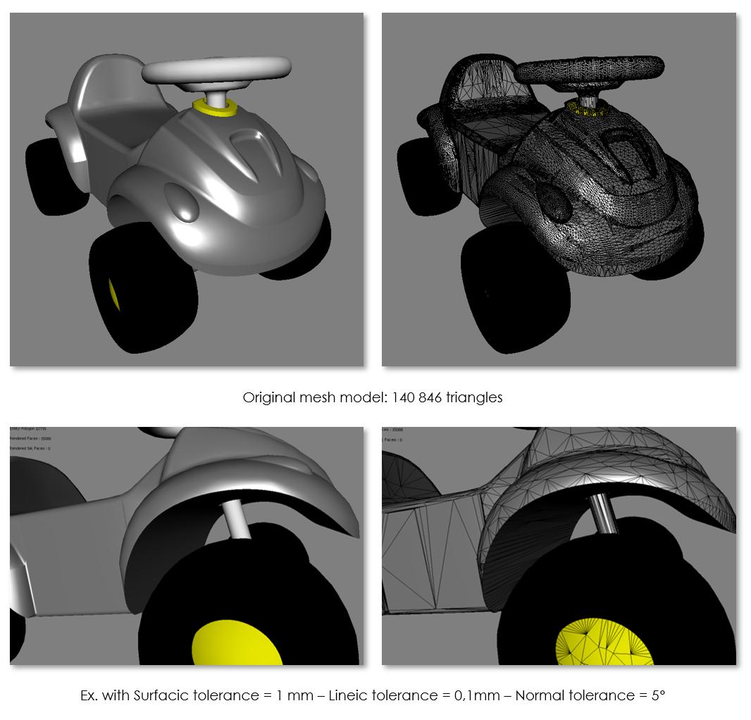 Surfacic tolerance: The maximum distance between vertices of the original model and resulting simplified surfaces.