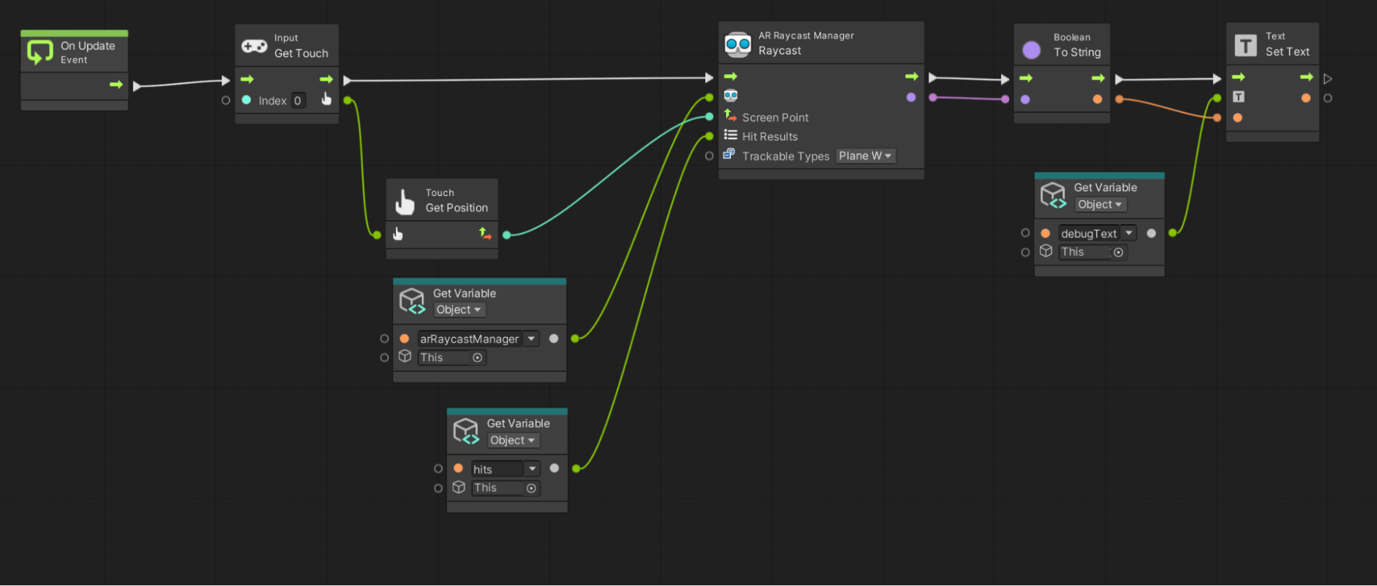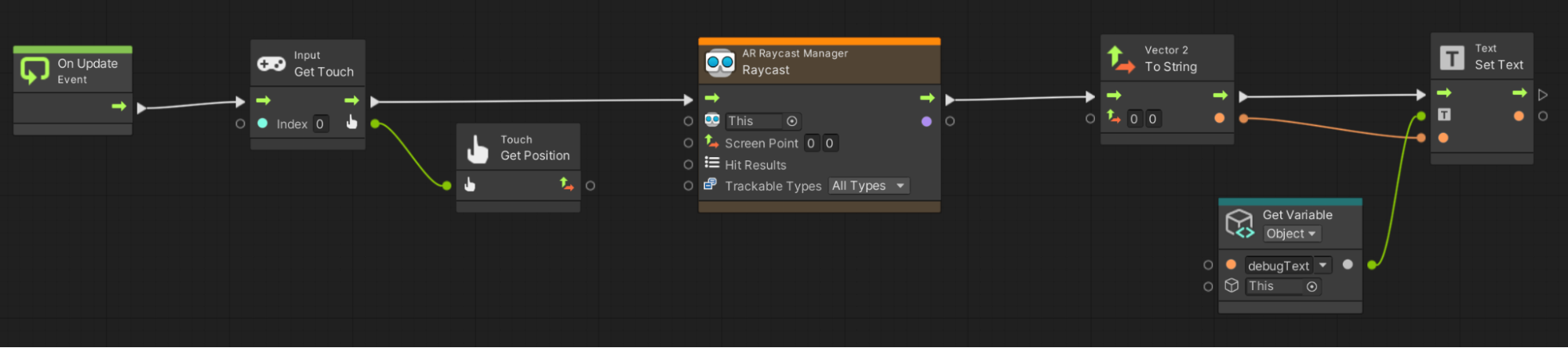 이전에는 Vector 2: To String 노드를 사용하여 터치 위치를 UI에 표시할 수 있는 텍스트로 전환했습니다. 하지만 Raycast 노드를 사용하여 다른 접근 방식을 취할 수 있습니다.