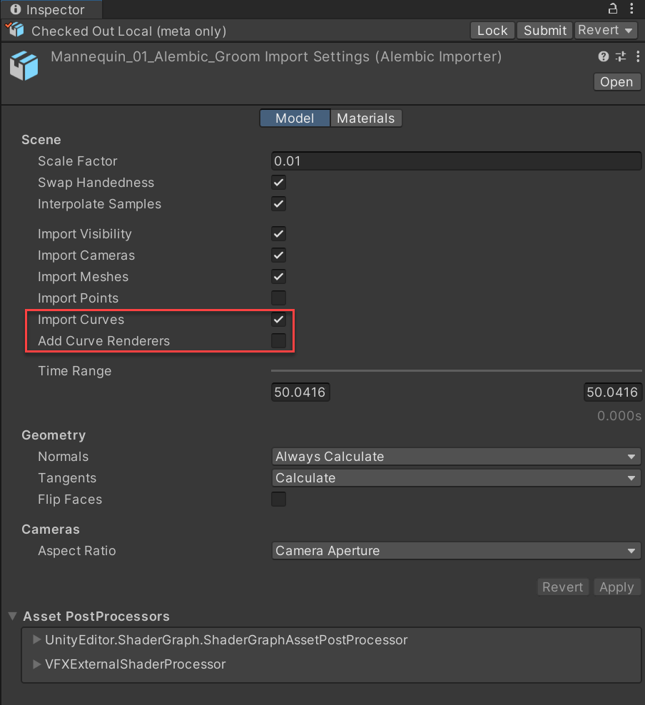 3. Select the Alembic Groom in the project and ensure Import Curves is enabled and Add Curve Renderers is disabled.