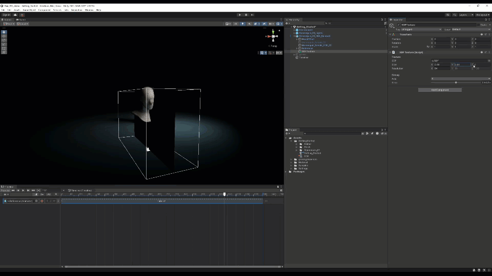 6. The SDFTexture component and the GameObject's transform determine the volume you capture, so make sure the GameObject surrounds your mesh and adjust its Size property.