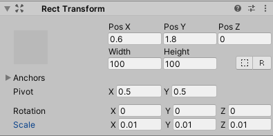 4. You can now position the Canvas in your Scene using the Move Tool. In the Rect Transform component, set the following fields: