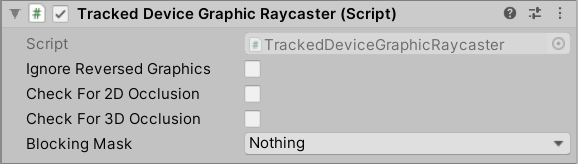 - A normal UI Canvas GameObject, with an additional component called Tracked Device Graphic Raycaster