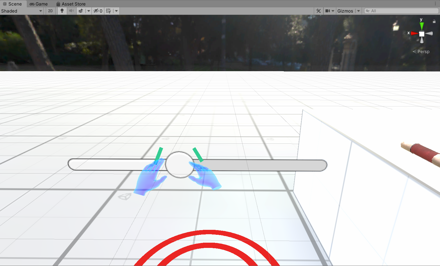 11. Point your hand straight at the Slider Handle, using the UI Pointer as reference.