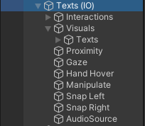Finally, as we are going to show and hide these texts according to what the user is doing you need to convert your ‘Texts’ object into an Interactive Object (IO).
