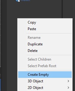 When you have created all your texts, group them inside an Empty Game Object that you can call ‘Texts’. For this Right-Click in an empty space of the hierarchy and select Create Empty: