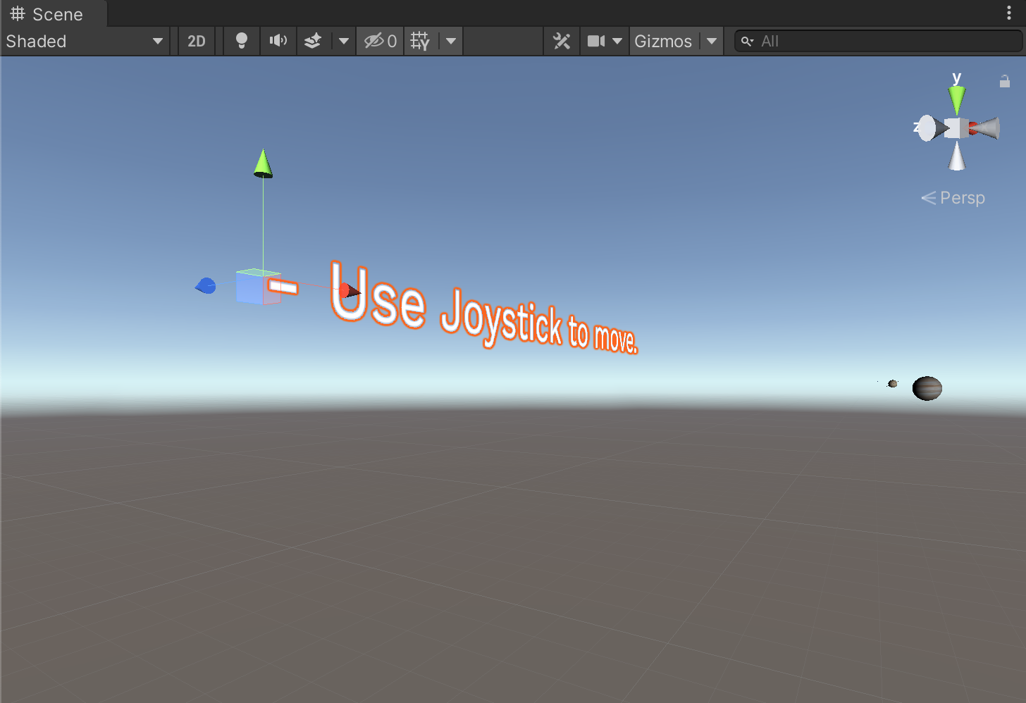 Time to test! Press on the Play button in the middle top of the Unity window and put your headset on! You should see all planets aligned. Then try moving forward with your joystick (the one you set in a previous tutorial), remember the rotation of your head dictates the direction in which you are moving.
