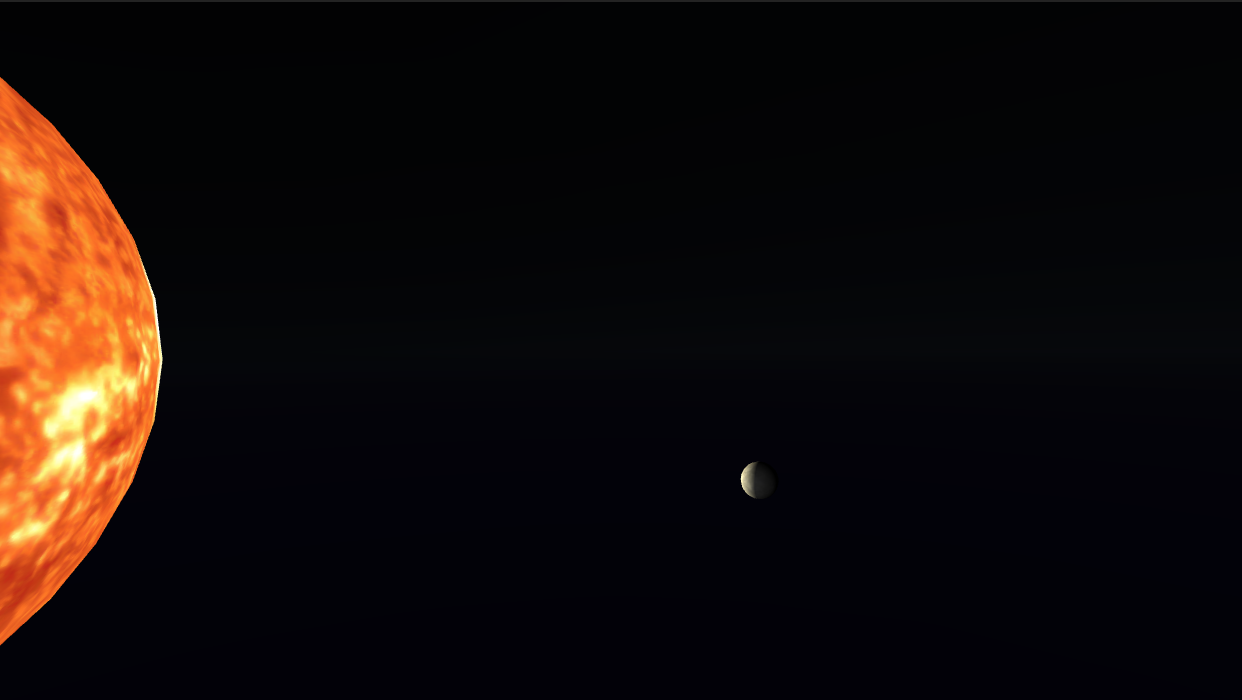 For the moon we are going to use a different scale so it does not look too close from earth. In reality the moon is located at 384 400 km from earth. Let’s then add to earth’s location 3.844 meters. This means you can place the moon at: 302.844, 0, 0.