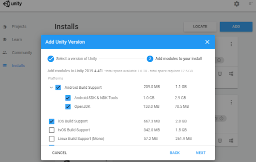 Install the correct version of Unity with the proper mobile build tools using the Unity Hub. Make sure you are using an Android device with a Windows 10 computer. Minimum Android version of 7.0. Check supported devices.