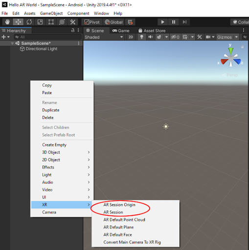 - Right-click in the Hierarchy > XR > AR Session Origin