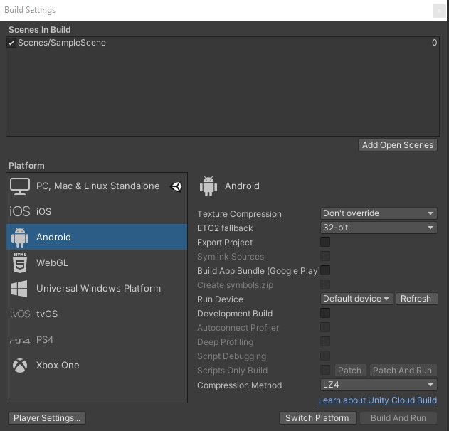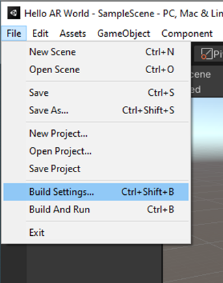 1. Inside your newly created project, let’s modify the build settings to target the ARCore platform.