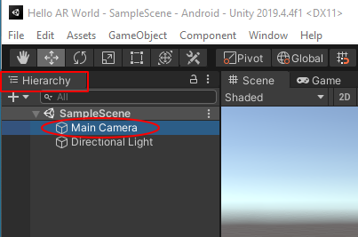 4. In the Hierarchy, click on the drop-down arrow next to the AR Session Origin object