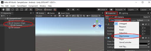 6. Under the Inspector, there is a Tag section. Click on the drop down menu and select Main Camera.