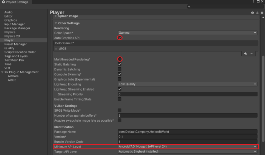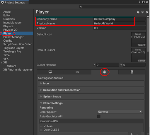 4. The Product Name should already be named “Hello AR World”, but if it is not, you can change it to a different name.